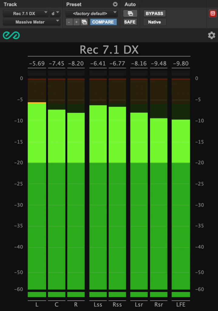 Massive Meterプラグインを使用すると、選択したDAWでオーディオをメータリングでき、Meter BridgeまたはMeter Bridge Proに接続してフレキシブルなメータリングが可能です。このプラグインは、サポートされているすべてのPro Toolsチャンネル幅に対応しています。 Massive Meterプラグインは、モノ、ステレオ、5.1、7.1、最も一般的なサラウンド・フォーマットをサポートするサラウンド・ワークフロー用に設計されています。 Instant、Sample Peak、RMS、Linear、K-12、K-14、K-20、VU、Digital VUのメーターフォーマットに対応。 メーター・フォーマット、レイアウト、サイズ、カラー、スケーリング、その他多くの機能を変更して、メーターをカスタマイズ可能です。 Avid Pro Tools AAX NativeおよびVST3プラグイン・フォーマットに対応。